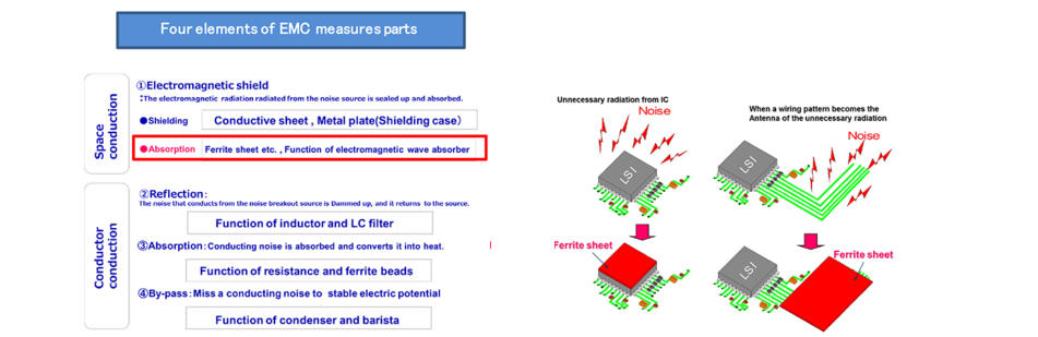 Noise suppression usage Attenuation of unnecessary radiation wave by the high permeability and high loss magnetic sheet(FLEX‒μ)